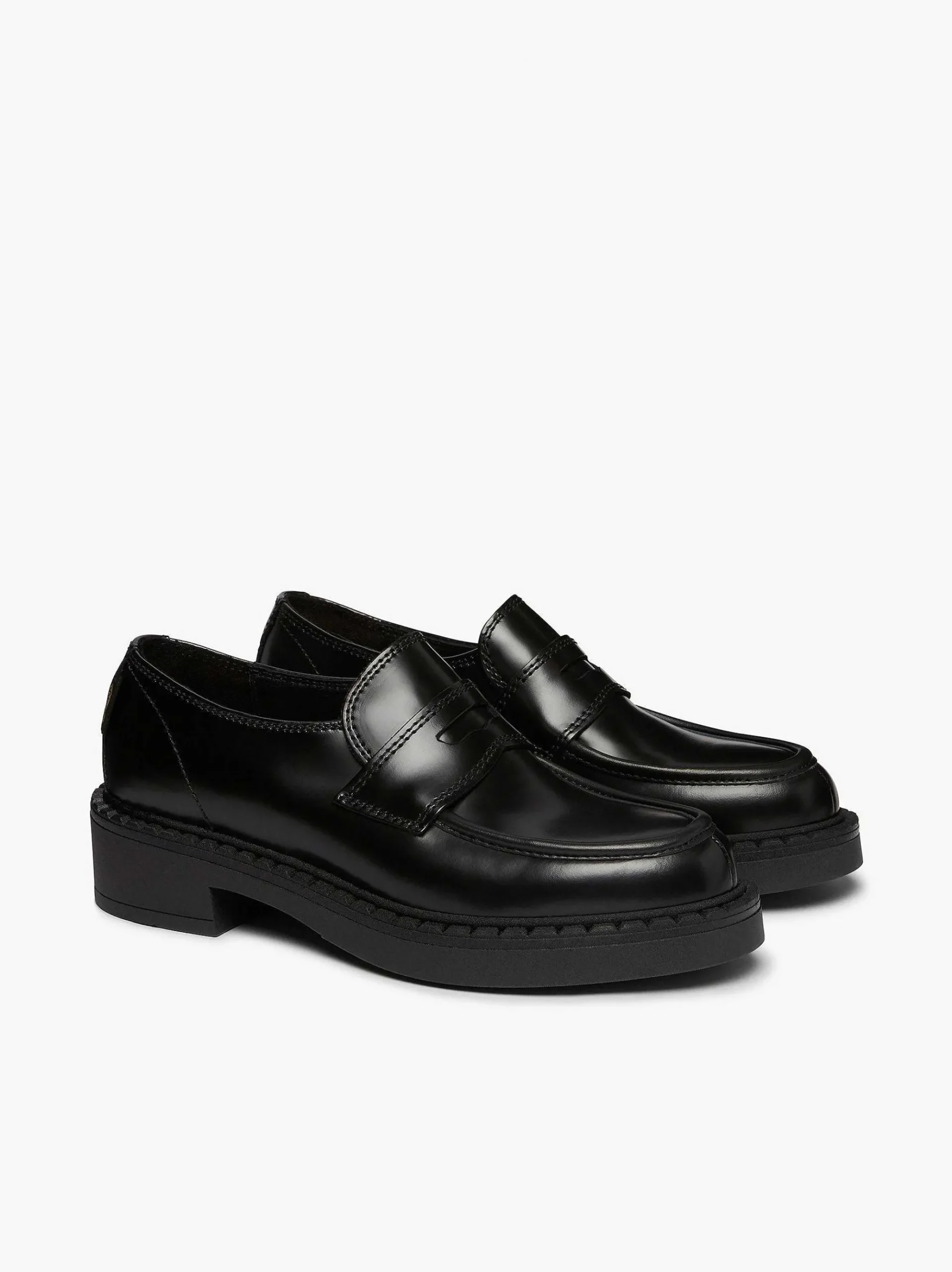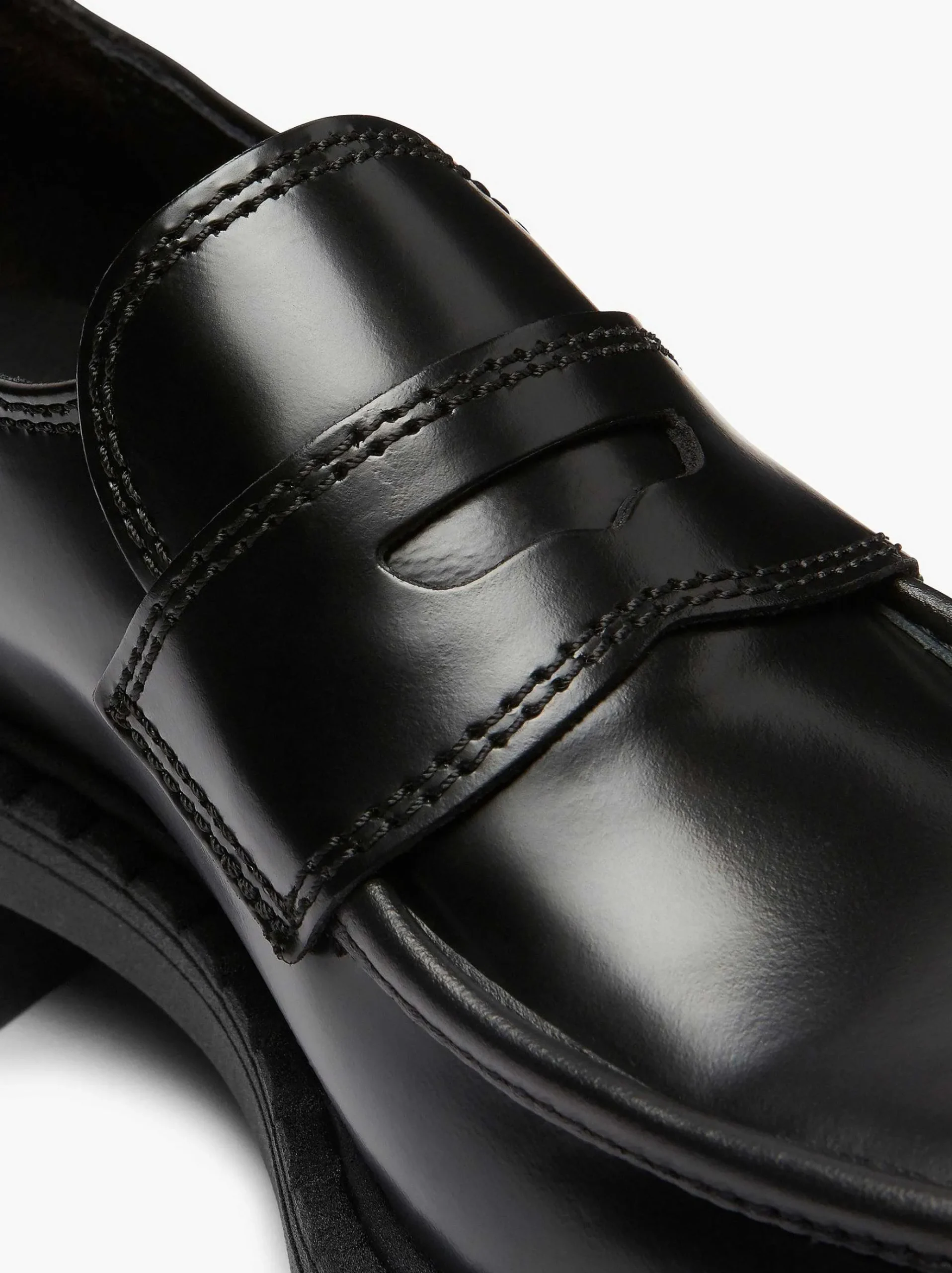 The Albany Ii Saddle Loafers In Black Leather Reimaginesthe Classic Women’S Penny Loafer Style In A Fresh Hybrid Silhouette And Chunky Heel. Crafted From Polished Black Leather And Featuring A Wide Saddle Strap, Rounded Toe And Thick Chunky Sole; This Distinctive Yet Classic Women’S Style Is Chic, Comfortable And Durable. The Ultimate Finishing Touch To Any Outfit.