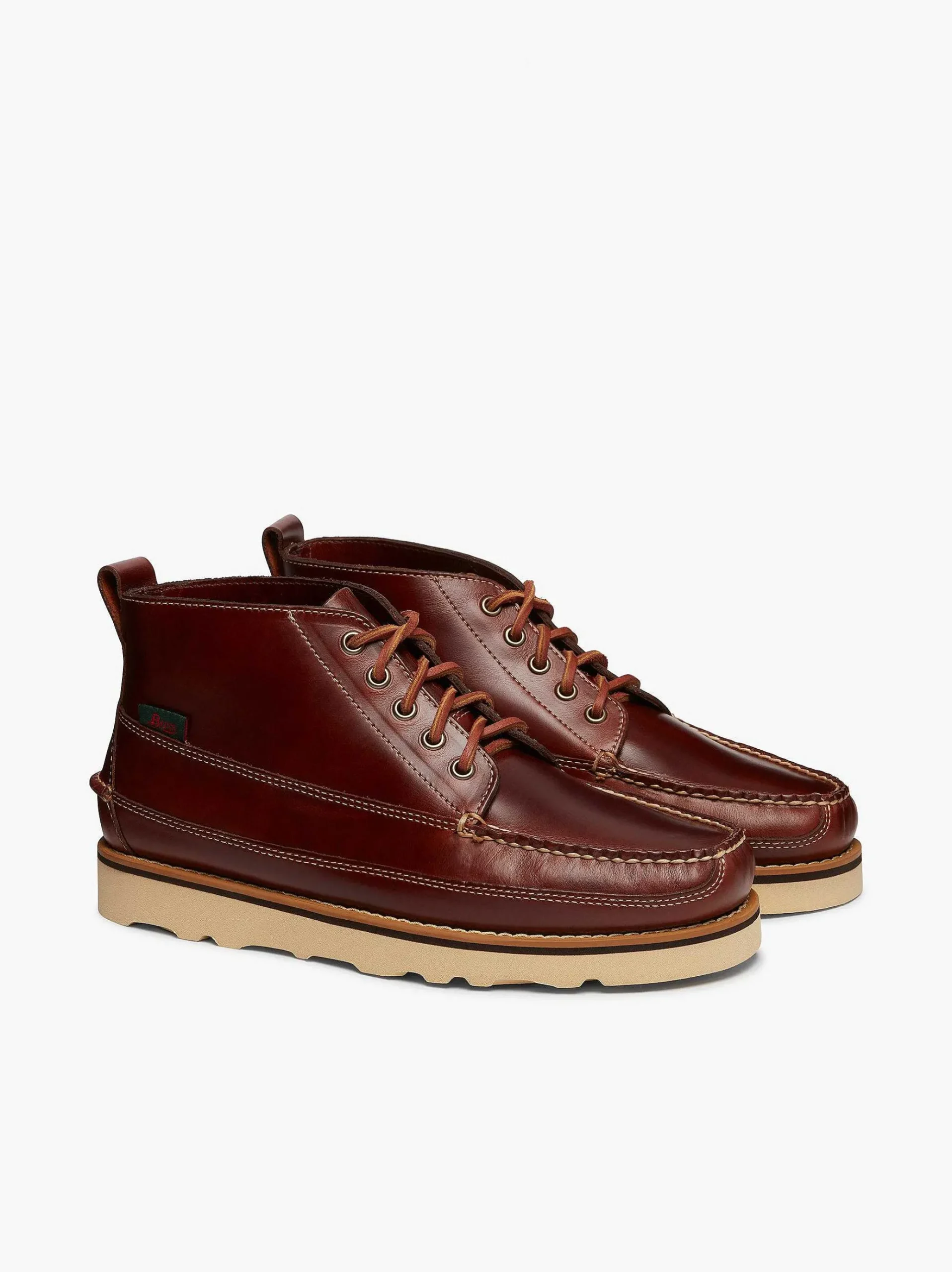 The Camp Moc Ranger Lace Up Boot Has Been Designed And Constructed With The Care Of Master Craftsmen Using A Top Grain Leather To Meet The Demands Of Men Who Insist On Top Smart Outdoor Wear. We Think Weve Met Those Demands At G.H.Bass. Giving This Boot A Lot Of Character By Using A Beautifully Reddish Dark Brown Pull Up Leather. Subtle Details Of Contrast Natural Stitching, Antique Brass Eyelets And Solid Leather Laces, Make This A Strong Identifiable Boot For Any G.H.Bass. Customer.