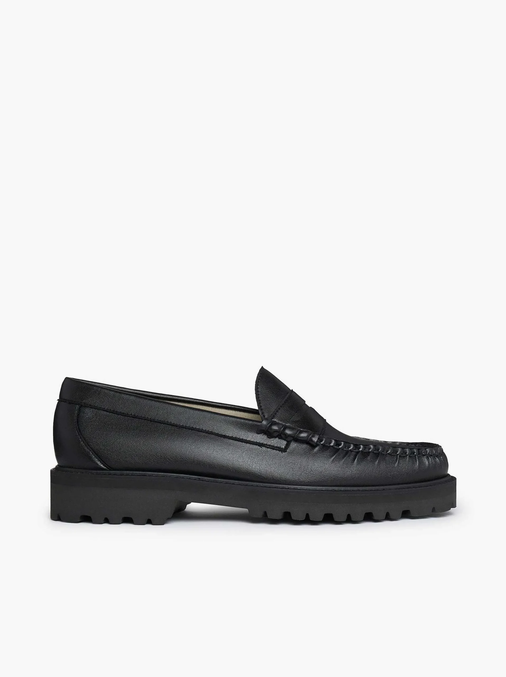 Introducing The First Range Of Vegan Leather Loafers Made From The Latest Innovative And Environmentally Friendly Materials. This 100% Non-Leather Shoe Is Realised In A Soft And Pliable Black Desserto Cactus Leather, Developed In Mexico Using Nopal Cactus Leaves For A Sustainable, Organic Product Thats Peta Compliant And Award Winning For Both Its Design And Green Credentials. Hand-Stitched Using Traditional Tubular Moccasin Techniques And Set On The Lightweight But Chunky Weejuns 90 Lug Outsole, Style Yours With Slim Black Trousers And Coordinating Black Shirt.