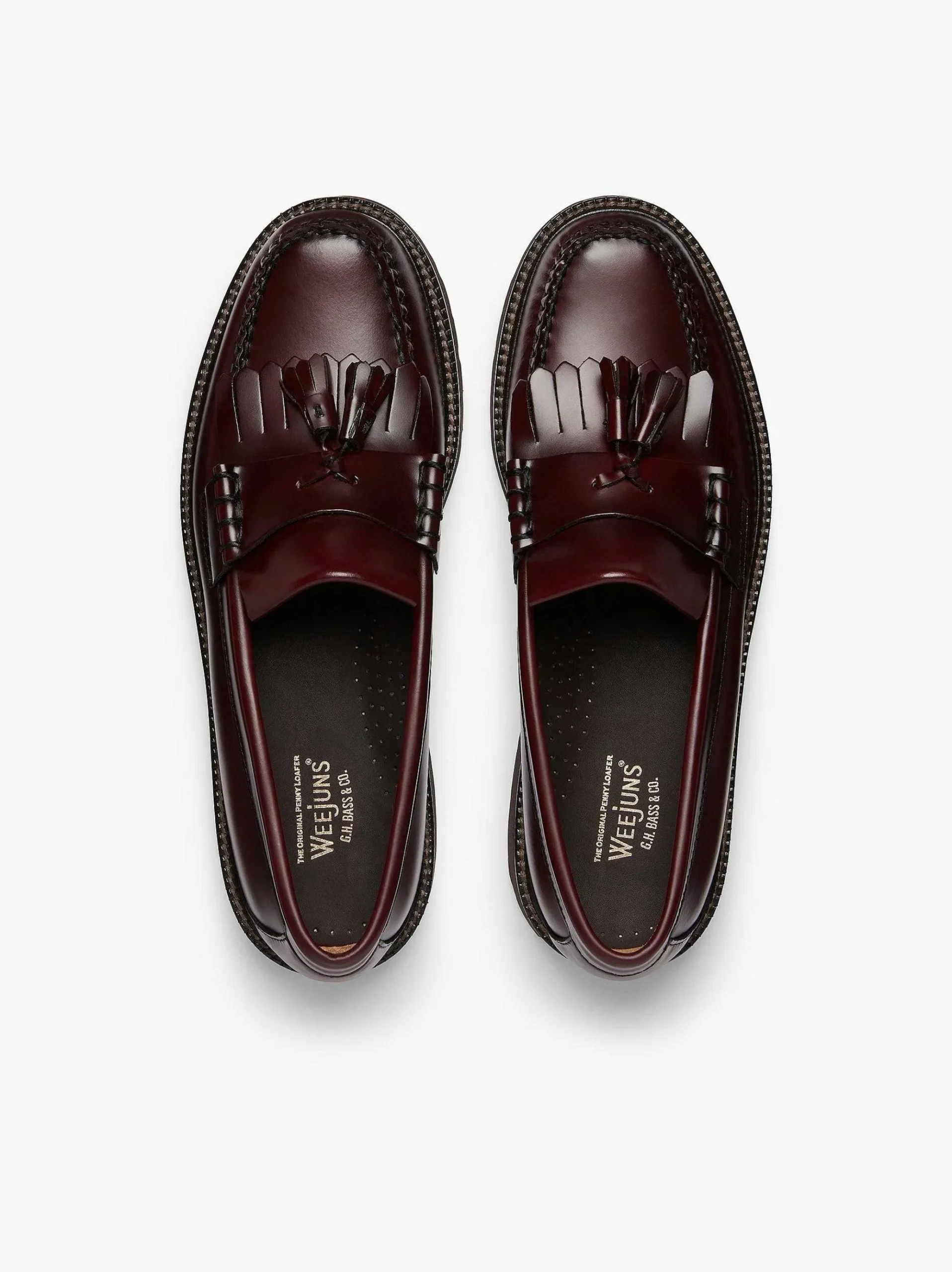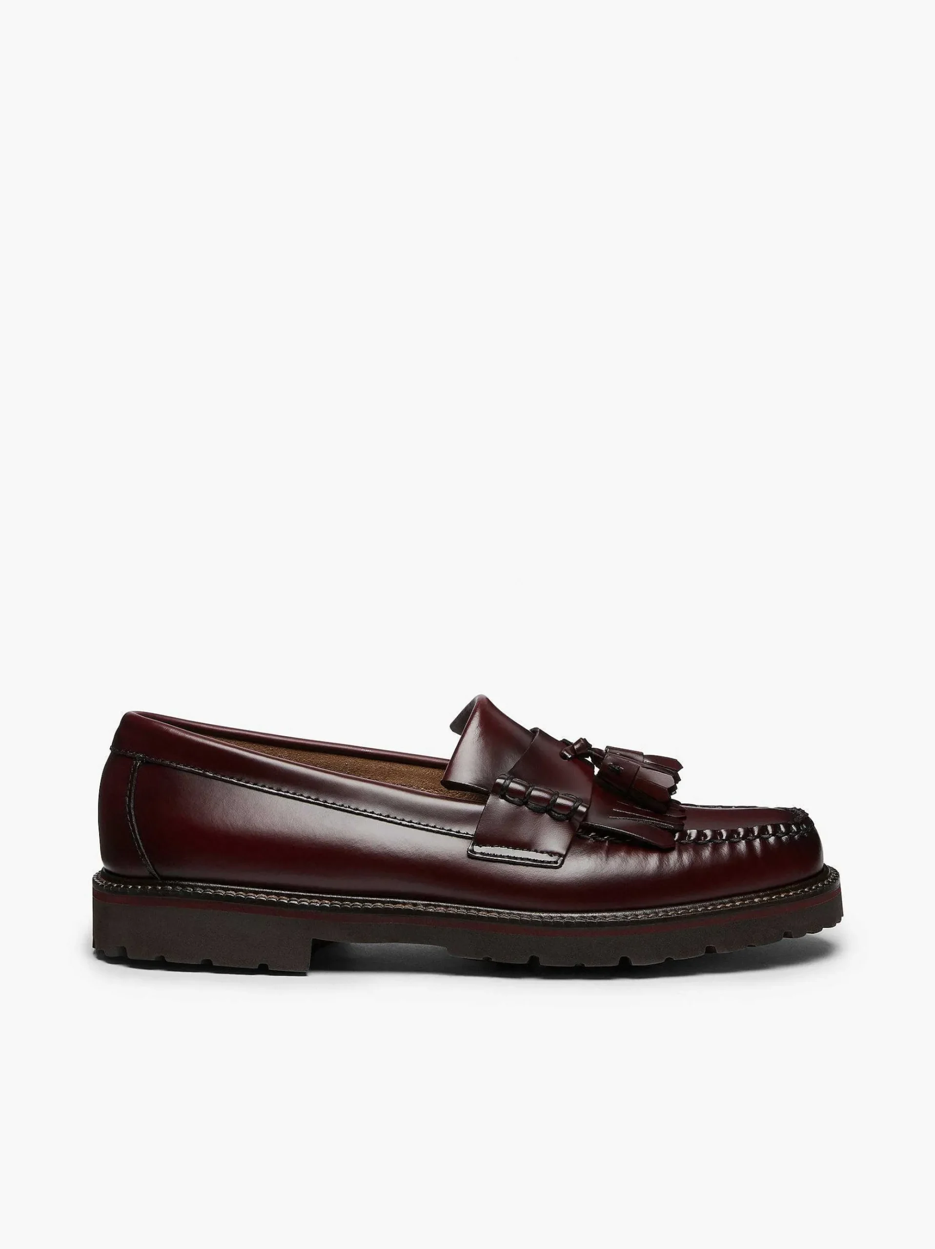 The Traditional Kiltie Tassel Loafers Is Paired With An Eva Lug Outsole Thats Comfortable In Rugged Terrains For A Fresh Weejuns 90S Profile. Handstitched In El Salvador From A Polished Moc Leather That Shapes To The Wearers Foot Over Time, This Is A Lightweight Shoe That Adds Interest To All-Black Looks, While Matching Easily To Everyday Wear, Turned-Up Denim And Ankle Socks.