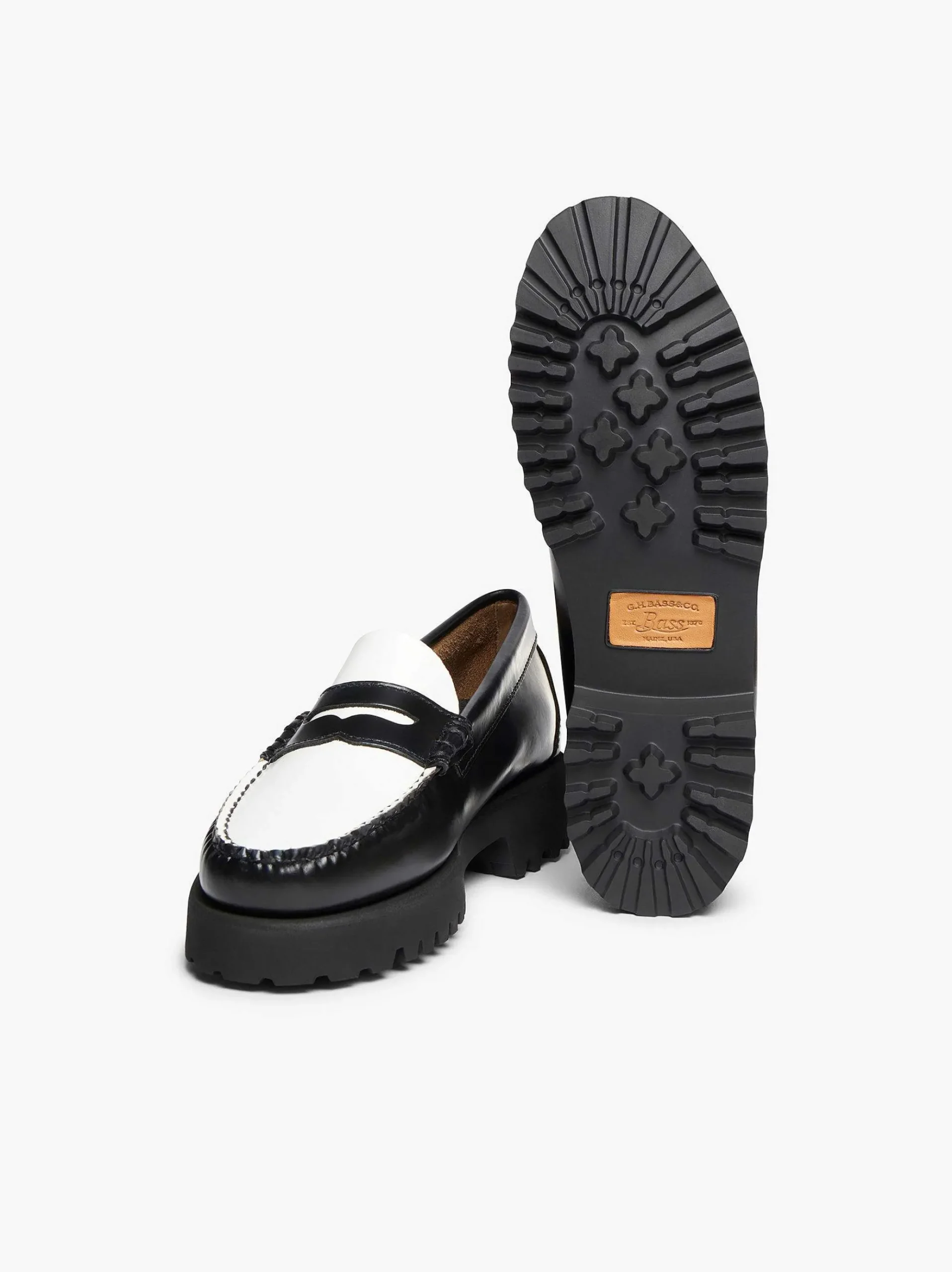 The Statement Monochrome Loafers Now Have A Fresh New Look Set Onto The Weejuns 90S Profile, Adding A More Youthful Adaptation On This Timeless Classic. Handmade In El-Salvador From Polished Black Leather And Finished On The Chunky Yet Super Lightweight Eva Outsole, This Style Adds A Dressier Flair When Paired With Workwear-Inspired Outfits.