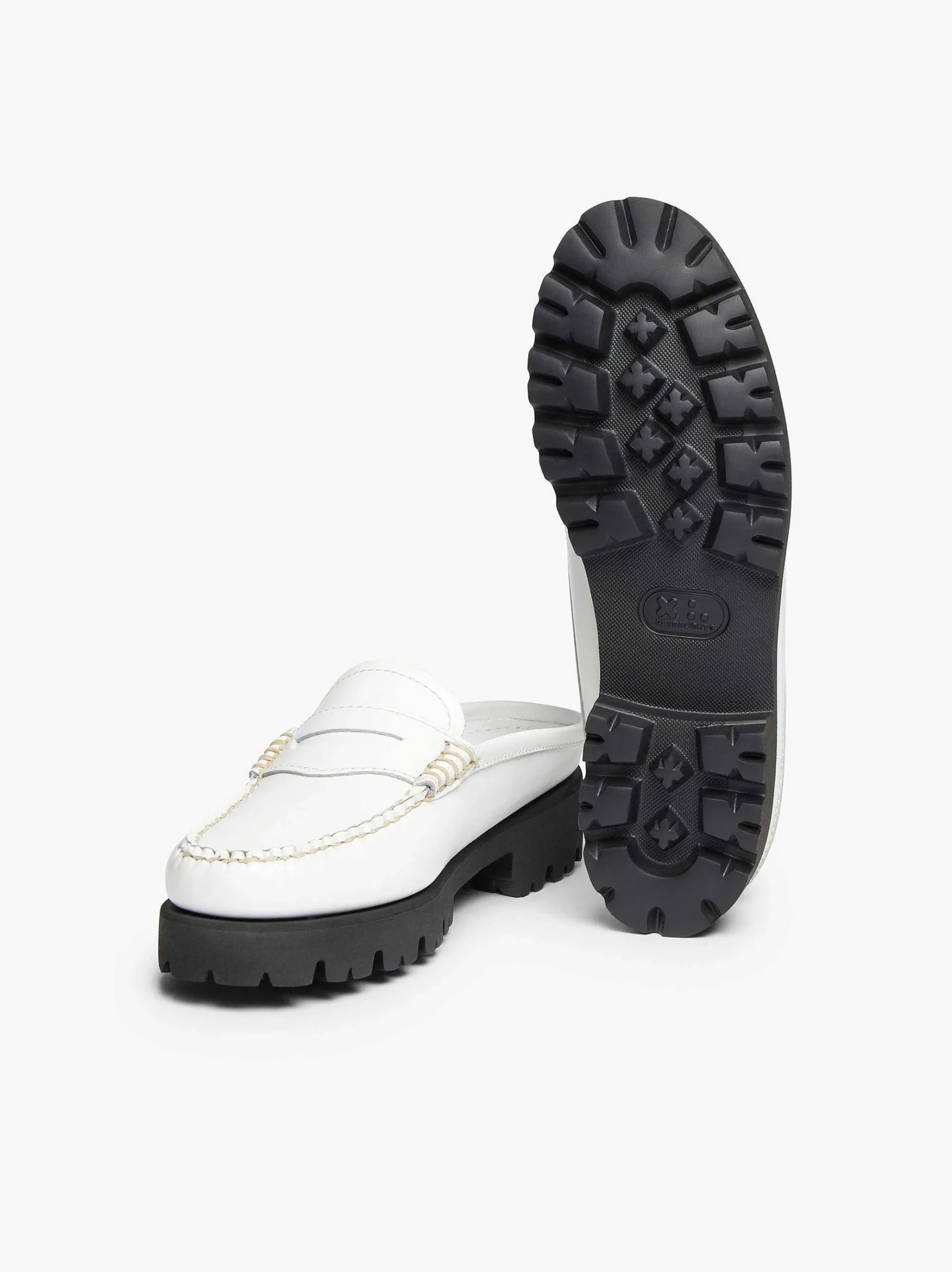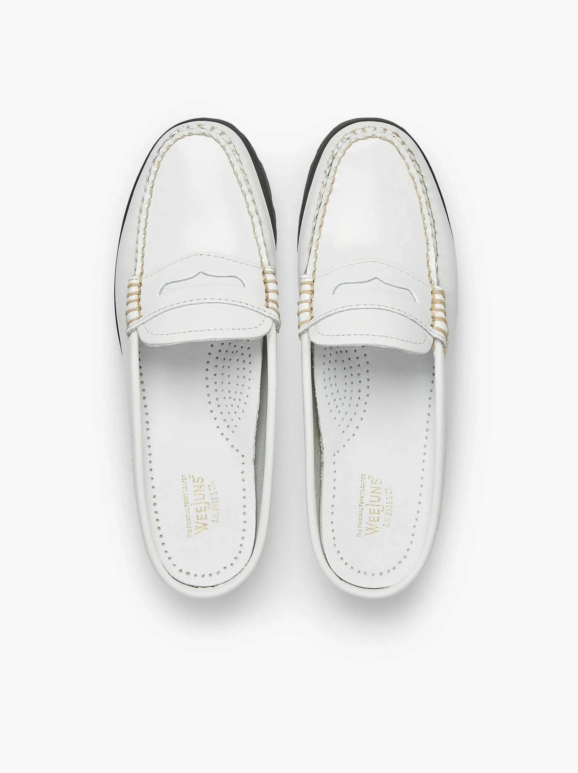 Realised In A Crisp White Polished Leather With A Weejun’S 90S Black Chunky Outsole For A Bold Contrast Look, The Weejun’S 90S Penny Slide Is A Fresh Hybrid Style Bringing The Classic Penny Loafer Profile To A Chunky Backless Mule Design That’S Ideal For Spring. Suitable For Daily Wear, Style Yours With Summer Dresses Or A Co-Ordinated Shirt And Shorts Look In The Favourite Bold Pattern Or Colourway.