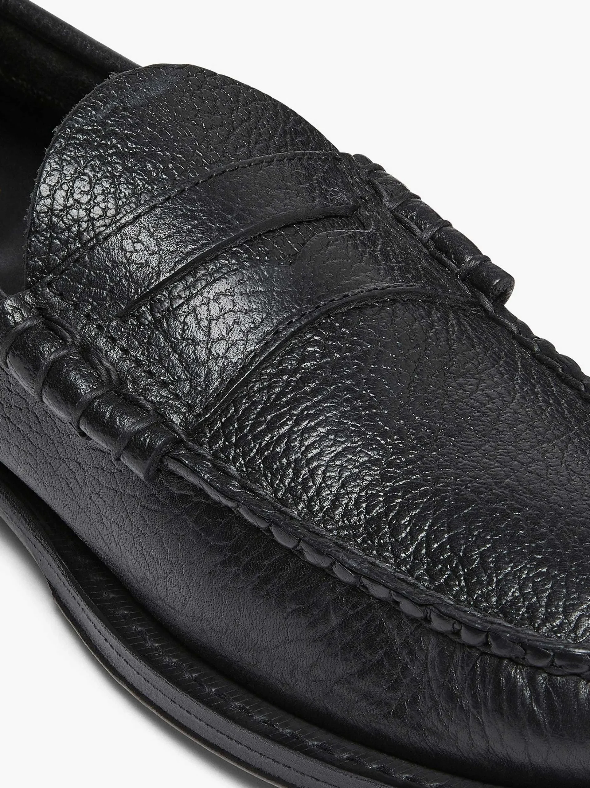 Handcrafted From A Full-Grain Black Tumble Leather With A Beautifully Textured Finish, The Larson Tumble Is An Elegant Shoe Set On A Classic Black Leather Sole. Featuring A Heritage Design Which Uses Construction Techniques From 1936 For Inbuilt Comfort, This Refined Style Adds A Distinguished But Relaxed Look When Paired With Turn-Up Boxy Trousers And Modern-Cut Denim Jacket.