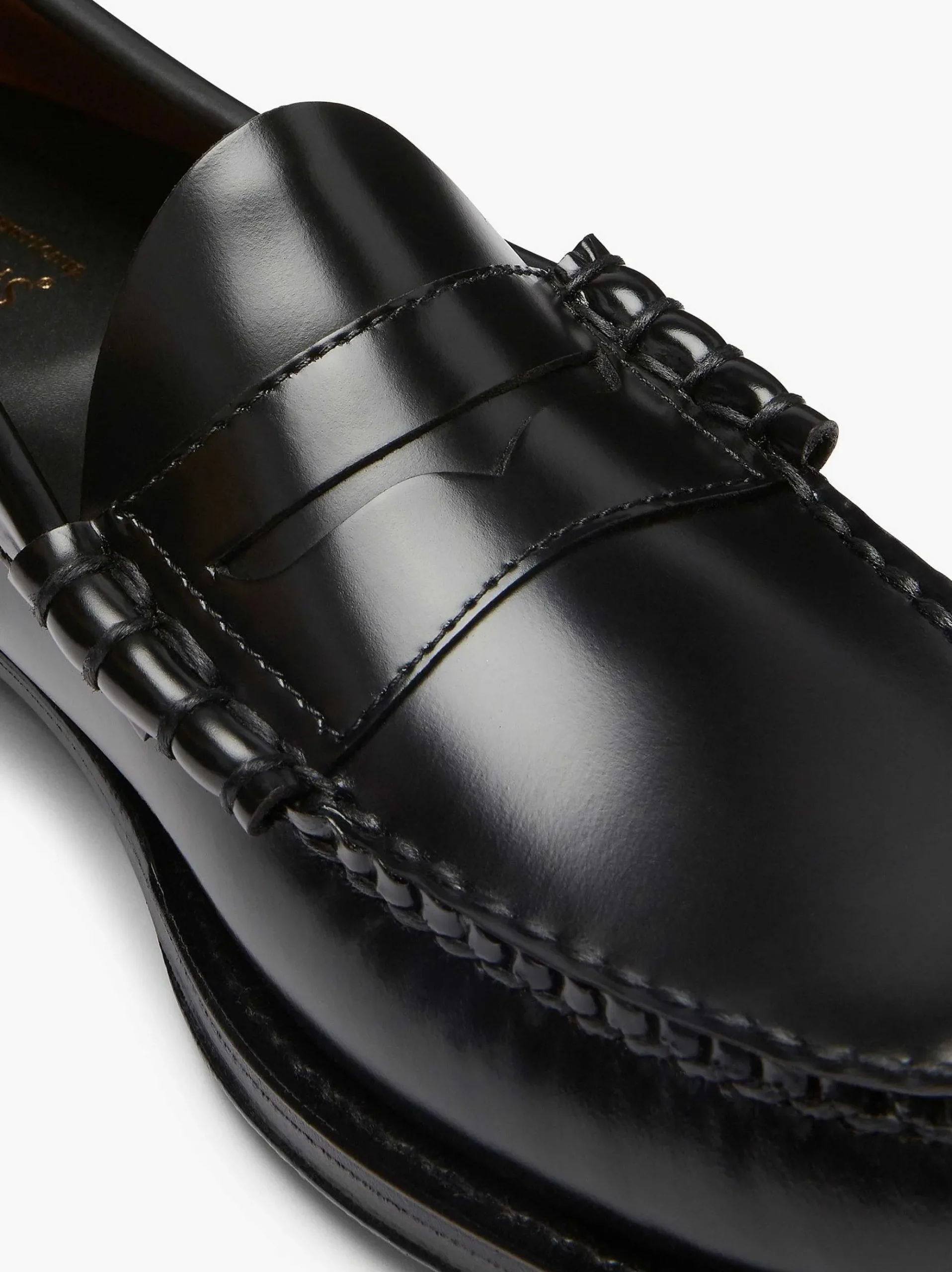 The Larson Is The Original Penny Loafers, Hand Stitched In El Salvador From Polished Black Leather With A Supple Leather Sole. Its Heritage Design Maintains The Shoes Classic Profile But – Thanks To The Use Of Original Construction Techniques From 1936 – Gives A More Luxury Feel, With Added Footbed Cushioning For Comfort.The New Classic, The Heritage Larson Goes As Well With Tailoring As Turned-Up Jeans For Maximum Versatility. Traditional Quality For The Modern Man.
