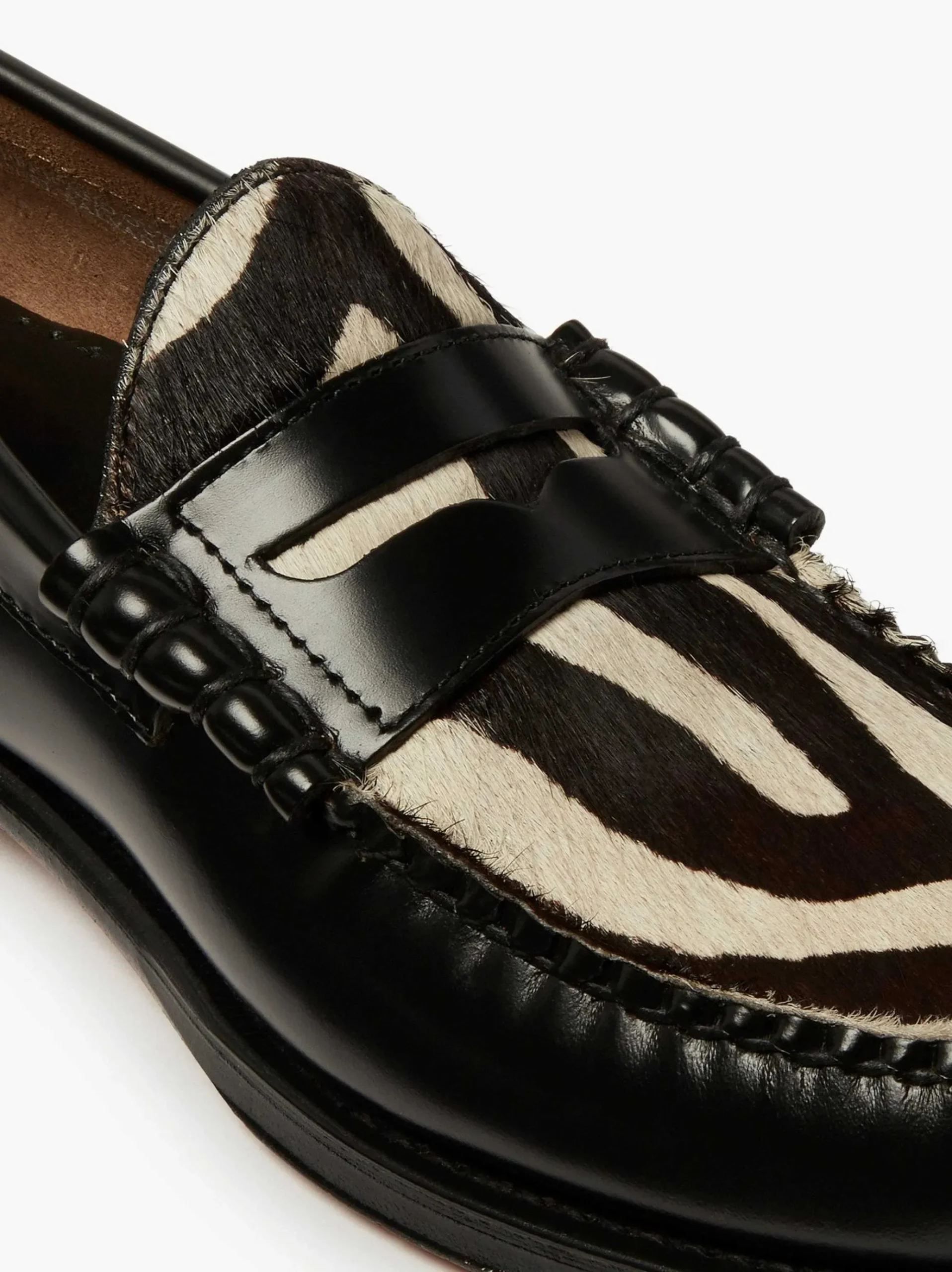 The Original Loafer Returns With A Statement Zebra Print Hairy Apron For A Textured Finish That Elevates The Classic Penny Design. Handcrafted From Black Polished Leather With The Quality Weejuns Tubular Moccasin Construction, This Subtly Statement Shoe Is Set On A Slim Leather Sole For Easy Elegance; Match Yours With Occasion Wear Or Turned Up Trousers And A Leather Jacket For Versatile Dressing.