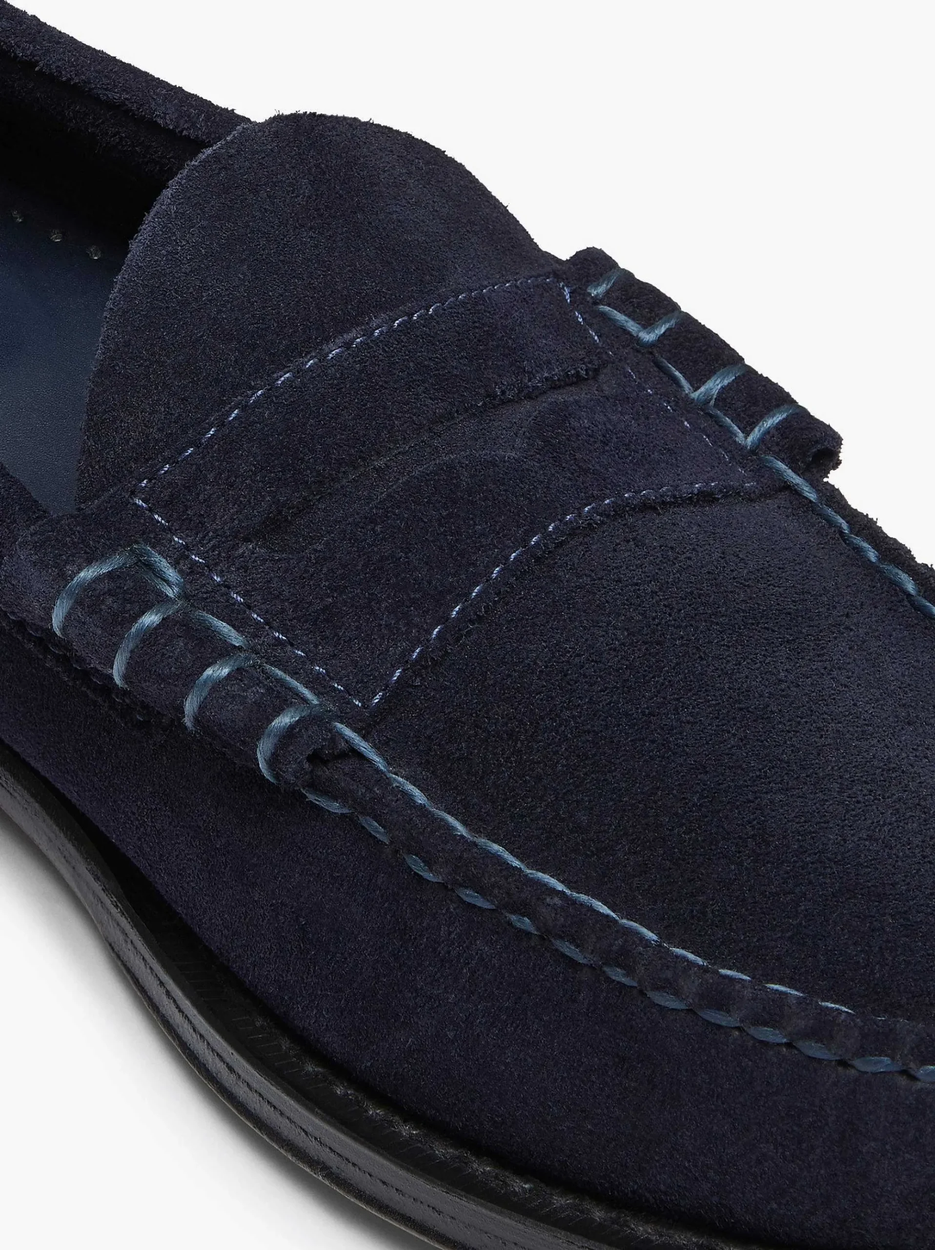 The Larson Is Handcrafted From Supple Suede In A Rich Navy Shade To Add Easy Colour And Interest To The Spring Looks. Featuring The Penny Loafer Profile With Heritage Construction Techniques For Inbuilt Comfort And Set On A Signature Leather Outsole For Added Character, This Versatile Shoe Wears As Well With Navy Spring Tailoring As Sand Trousers And White Shirt For Smart Casual Looks.