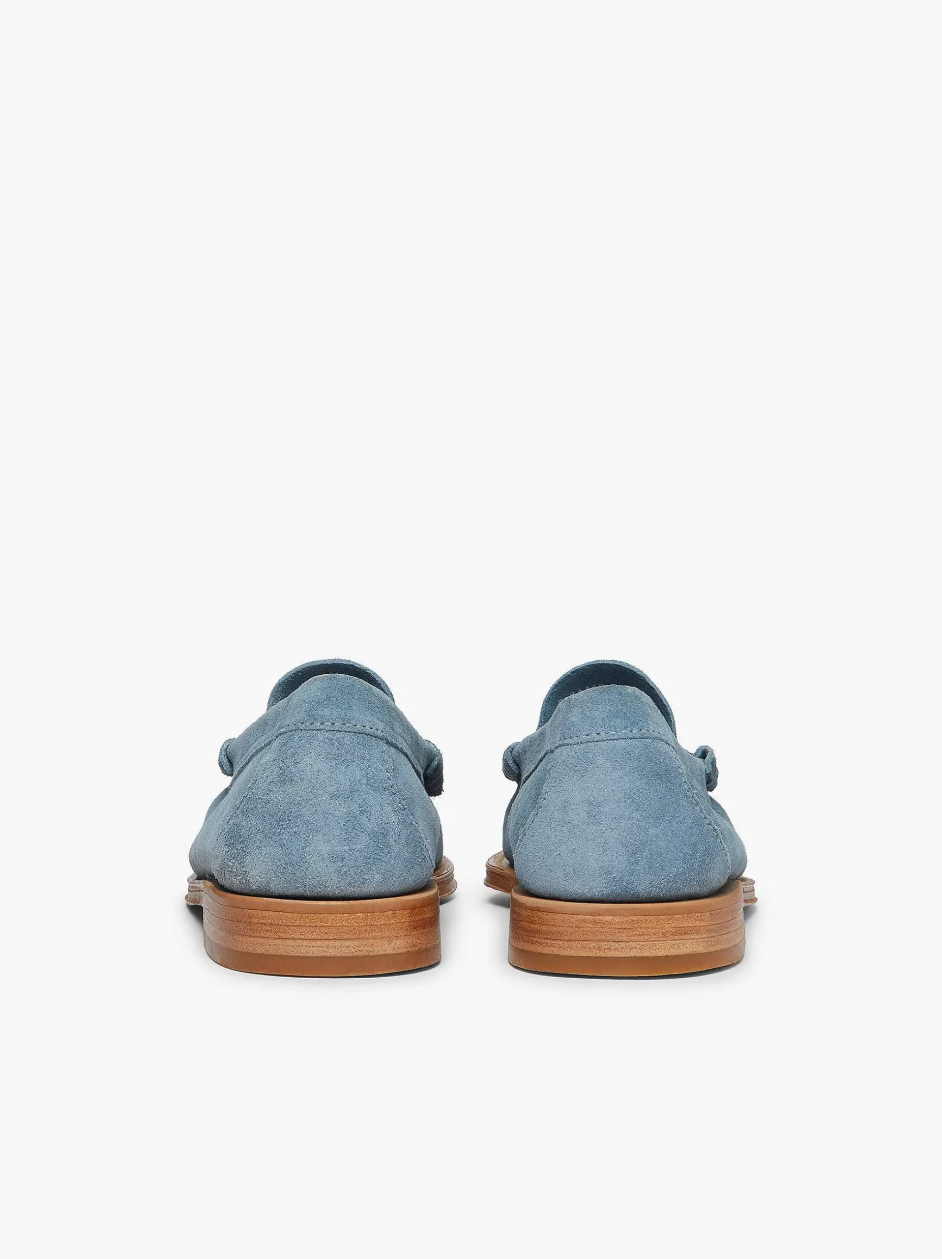 Handstitched From A Fresh Blue Suede, The Larson Seesthe Penny Loafer Profile Set On A Slim Polished Sole In Natural Colouring For A Neutral Finish And Overall Refined Style. Constructed With Heritage Techniques For In-Built Comfort, This Spring Ready Shoe Adds A Simple Lift To The Wardrobe And Works Well Styled With A Coloured Trouser, White Shirt And Blazer Combination.