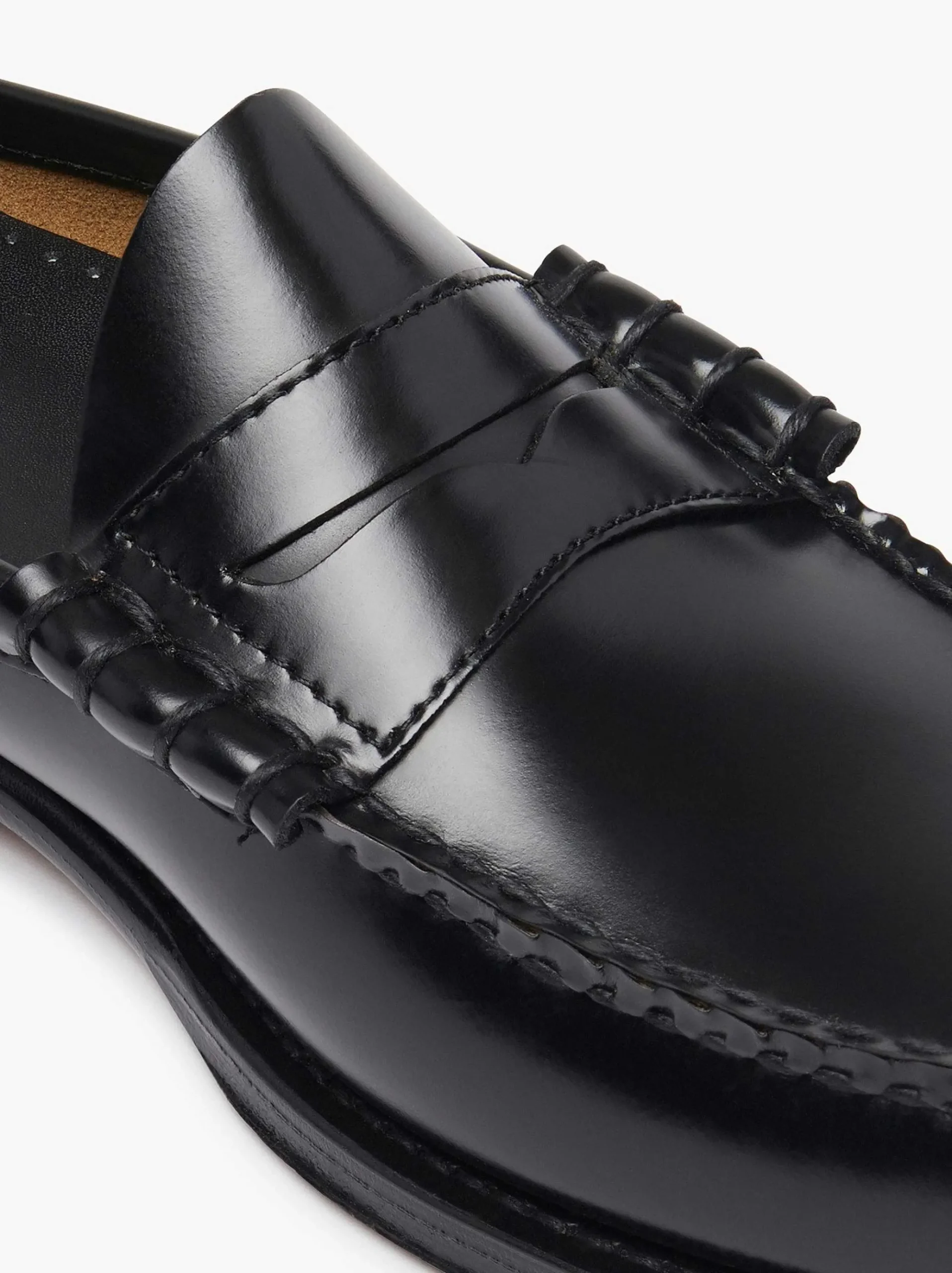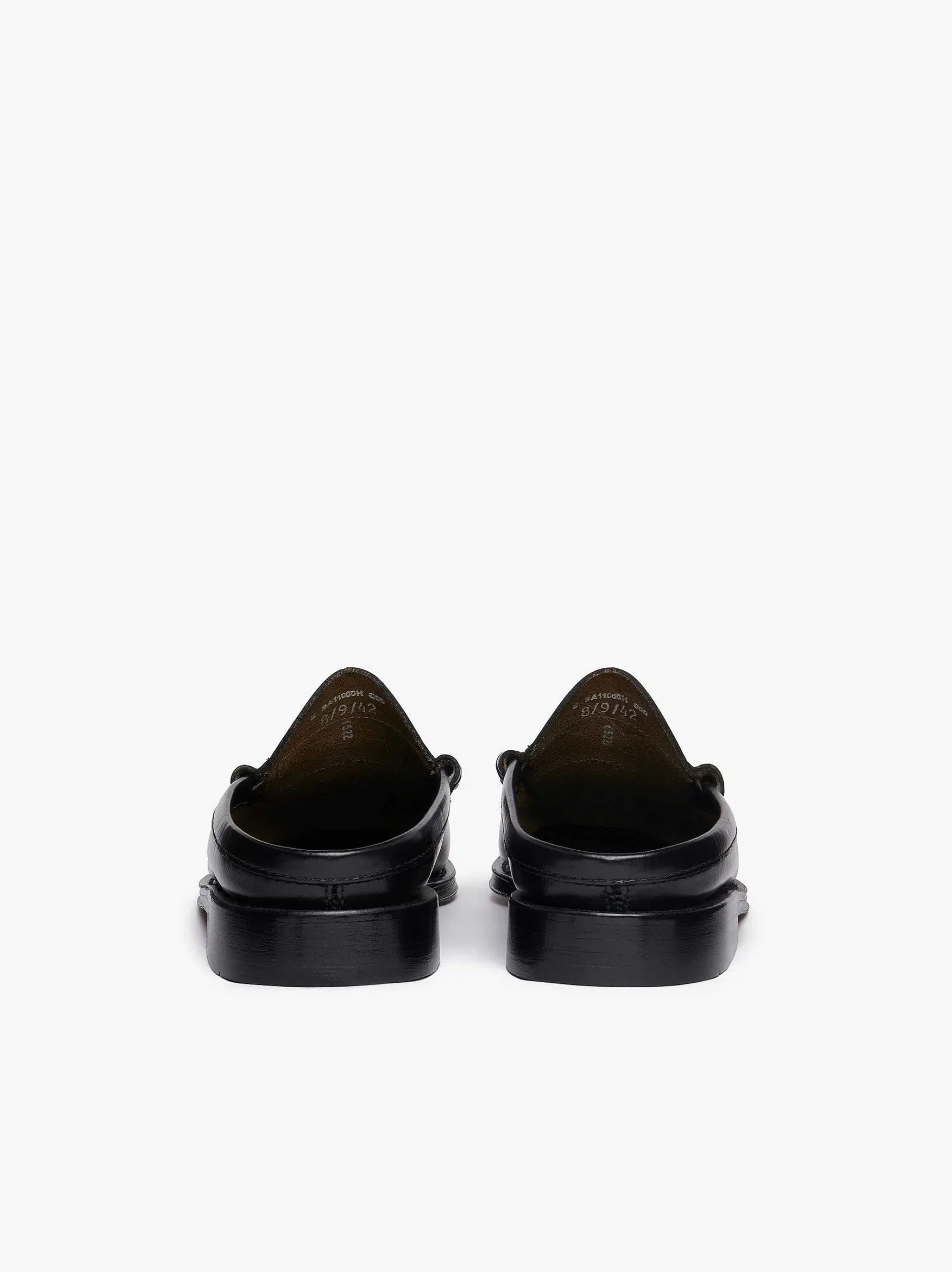 The Original Penny Loafer Is Now Available In A Sleek Backless Design. Handcrafted From Black Polished Leather Using The Time-Tested Moccasin Construction, This Slip On Shoe Is A Smart Casual Weekend Style That Can Be Easily Dressed Up Or Down With A Shirt, Belt And Trousers Combination, Or Worn With Blue Jeans.