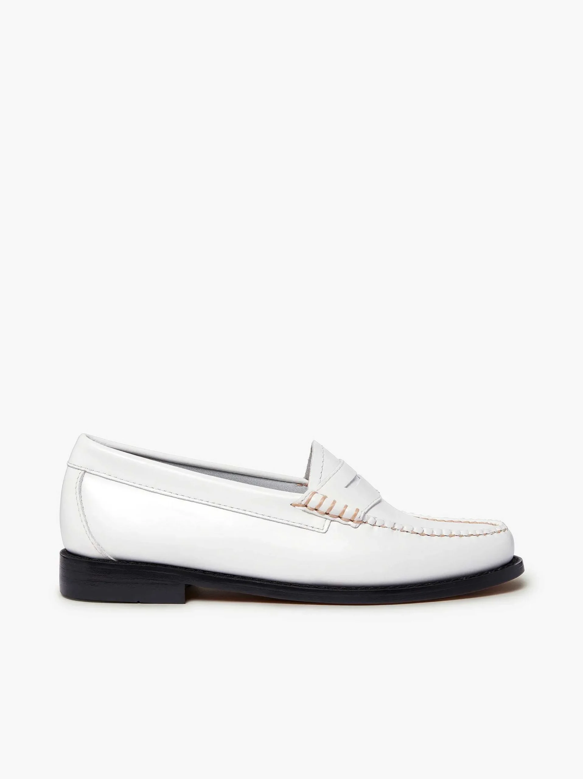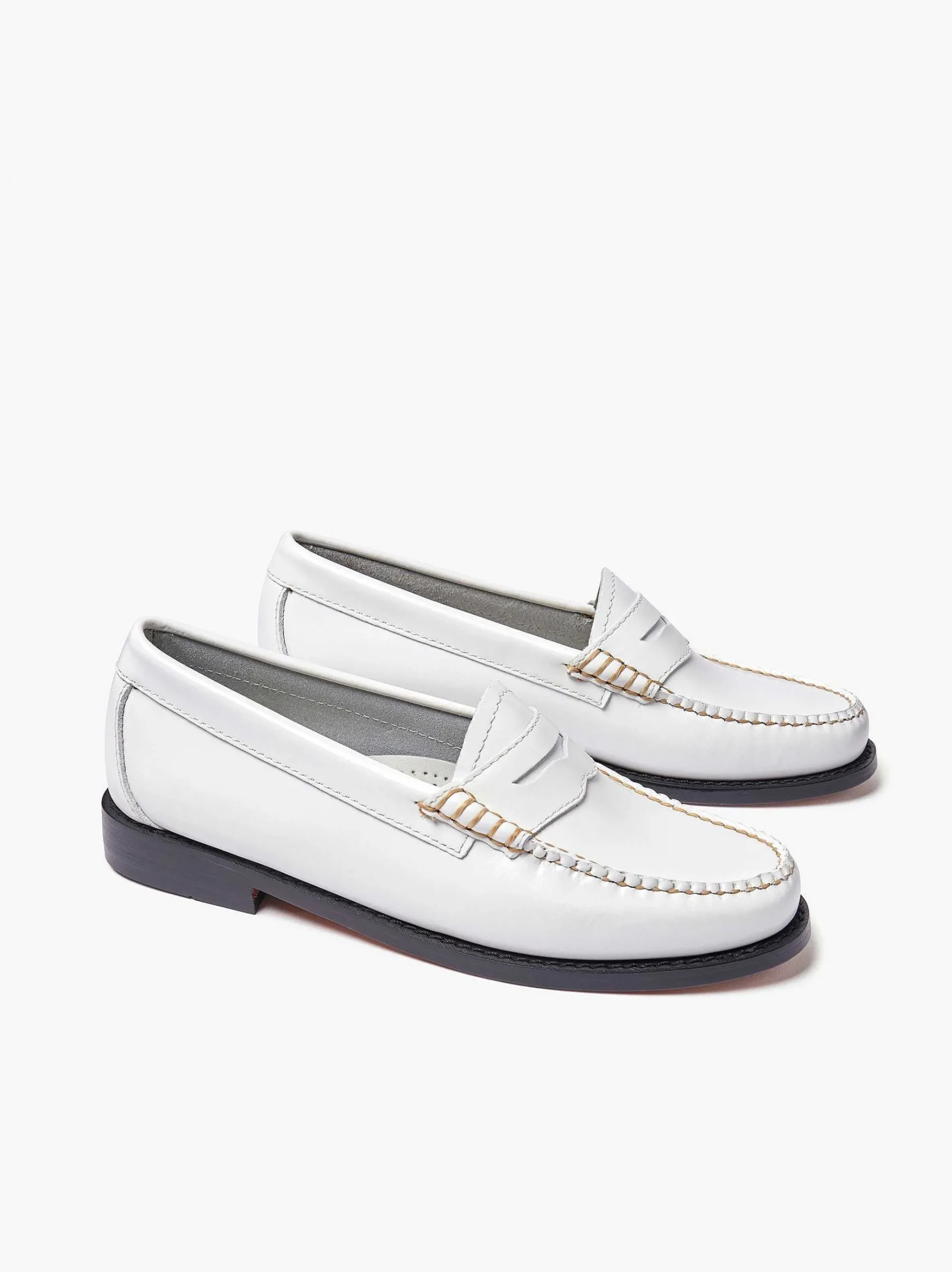 These Weejuns Penny Loafers Have Been Crafted From A Polished White Leather. This Slip On Shoe Is Made In El Salvador Using The Tubular Moccasin Construction Technique And Is Accented With Hand-Stitched Contrasting Thread To Add A Clean, Crisp Minimalist Look, Wear These With Everything From Tailored Summer Trousers To Dresses.