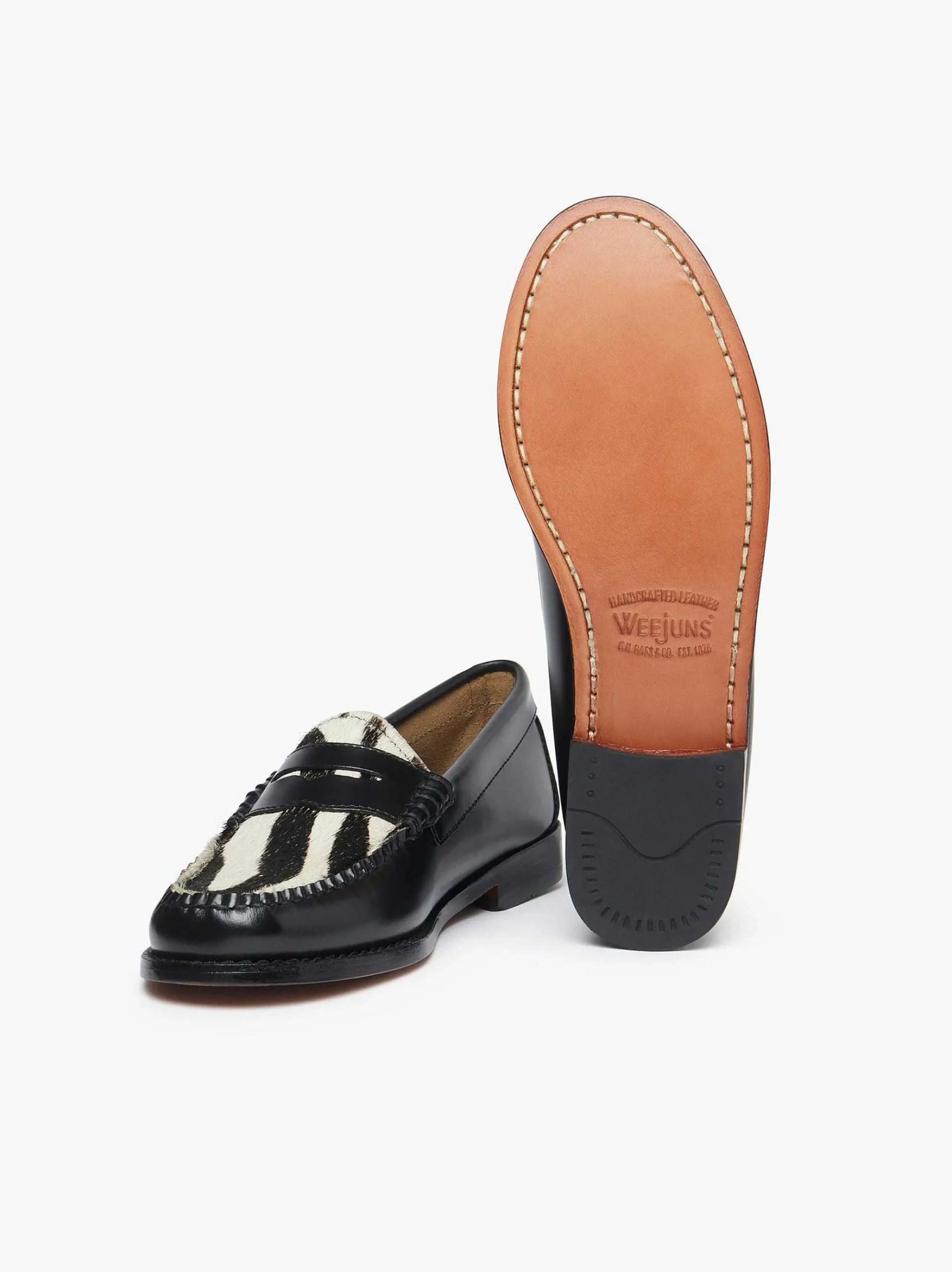 The Classic Penny Loafer Is Elevated With The Addition Of A Tactile Zebra Print Apron For A Sleek Black And White Design That’S Handcrafted From Black Polished Leather. Set On The Classic Leather Sole, This Refined Style Adds Playful Yet Timeless Interest Without Overwhelming; Dress Yours With Black Trousers And A Blouse For The Office Or With A Shift Dress And Woollen Winter Coat.