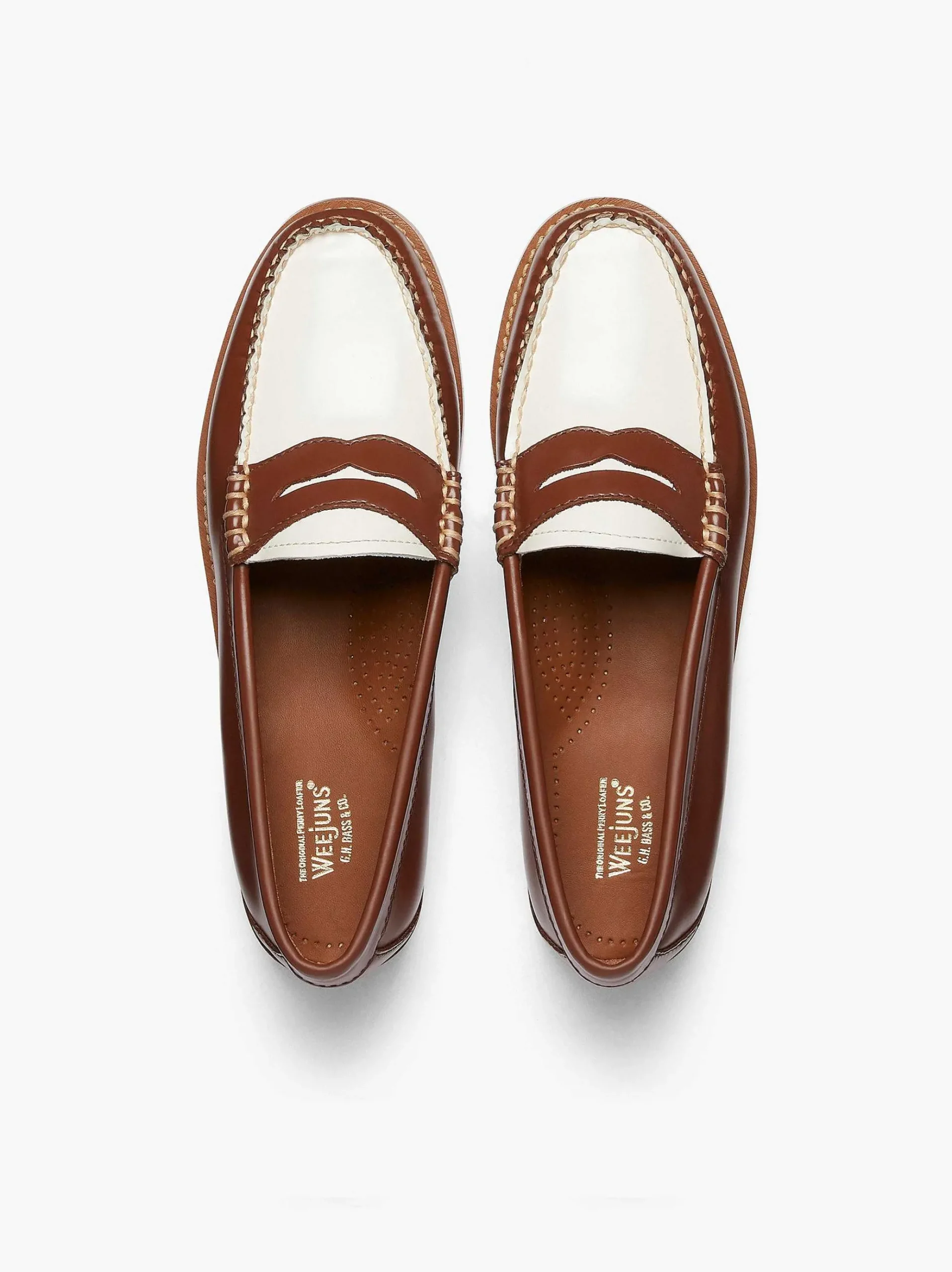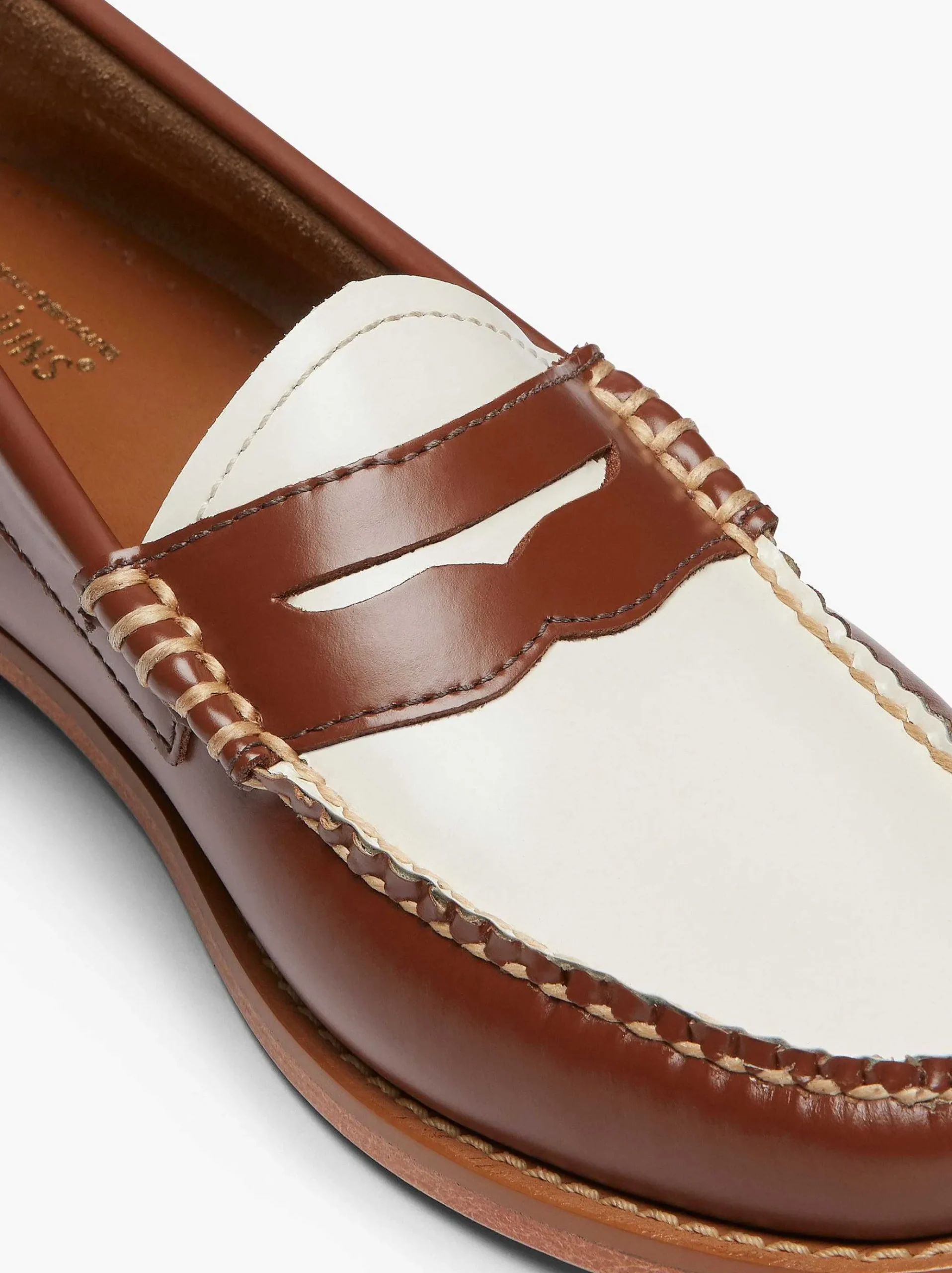 The Two-Tone Loafers Are A Wardrobe Staple For All Seasons, Hand-Crafted In A New Cognac And White Combination In A Polished Moc Leather, This Style Offers A Warmer Finish On The Classic Silhouette. This New Design Will Elevate The Autumnal Outfits, Adding A Subtle Statement To More Relaxed Styling, Like Denim Or Culottes, Idyllic For Weekend Strolls.