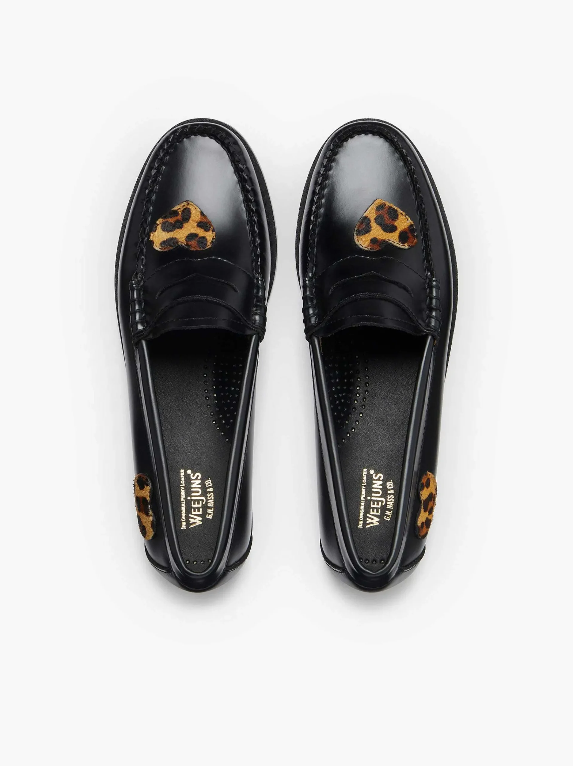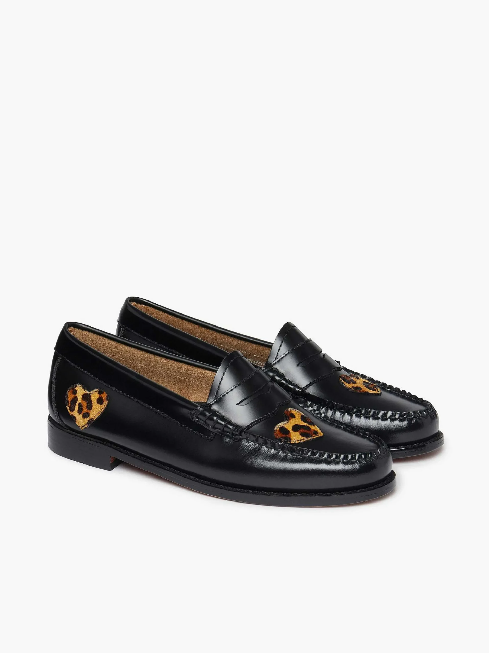 The Popular Penny Love Returns With Decorative Cow Hair Hearts In Colourful Leopard Print Motif. Set On The Original Black Polished Leather Penny Loafers And Finished With The Timeless Slim Leather Sole, This Is A Playful Update To A Classic Shoe; Style Yours With The Favourite Office Staples Or A-Line Skirt And Textured Hosiery.